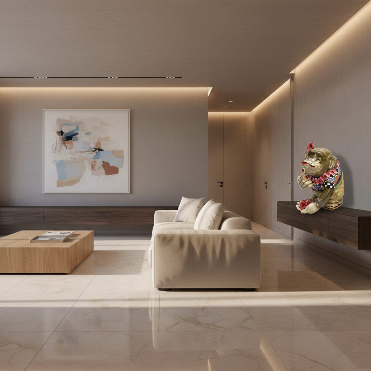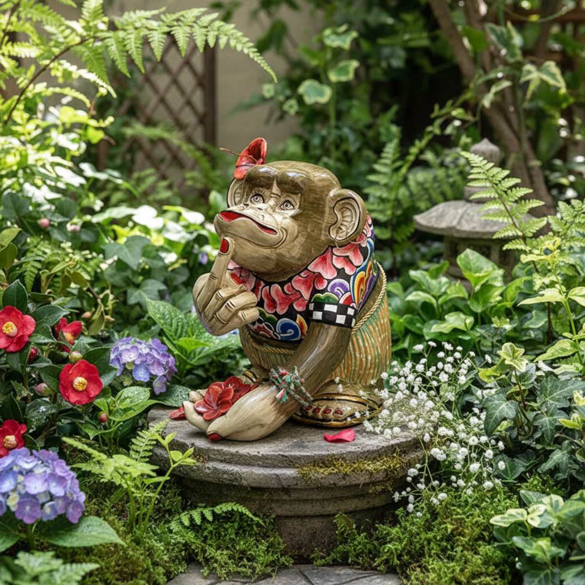 La nostra scimmia Judy affascina tutti. Nel tipico stile dei mari del sud, con dei fiori al collo e un fiore di ibisco tra i capelli, attira l’attenzione di tutti ed è un meraviglioso oggetto decorativo.